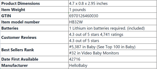 HelloBaby Monitor HB32 | Video Baby Monitors with Night Vision | Hellobaby