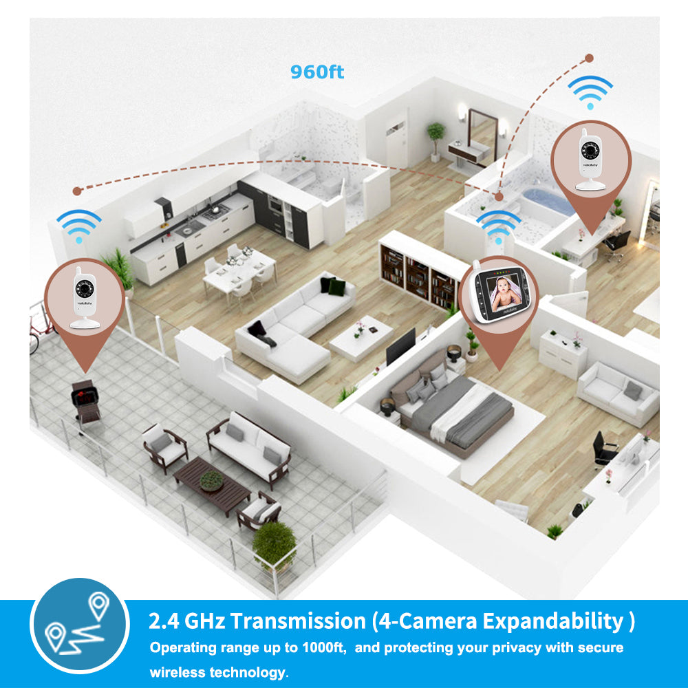 - TWO-WAY TALKBACK & 960ft TRANSMISSION RANGE:Â The baby monitor covers a long transmission range of up to 960 feet (tested in the open air). You could play 8 cute lullabies or use the two-way talkback intercom function to soothe your baby.